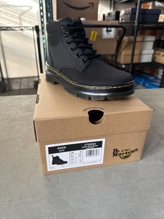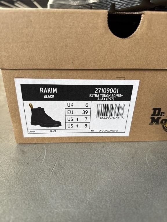 NEW PAIR OF DR. MARTENS AIR WAIR RAKIM BLACK EXTRA TOUGH 50/50 AJAX SIZE US MENS 7, LADIES 8