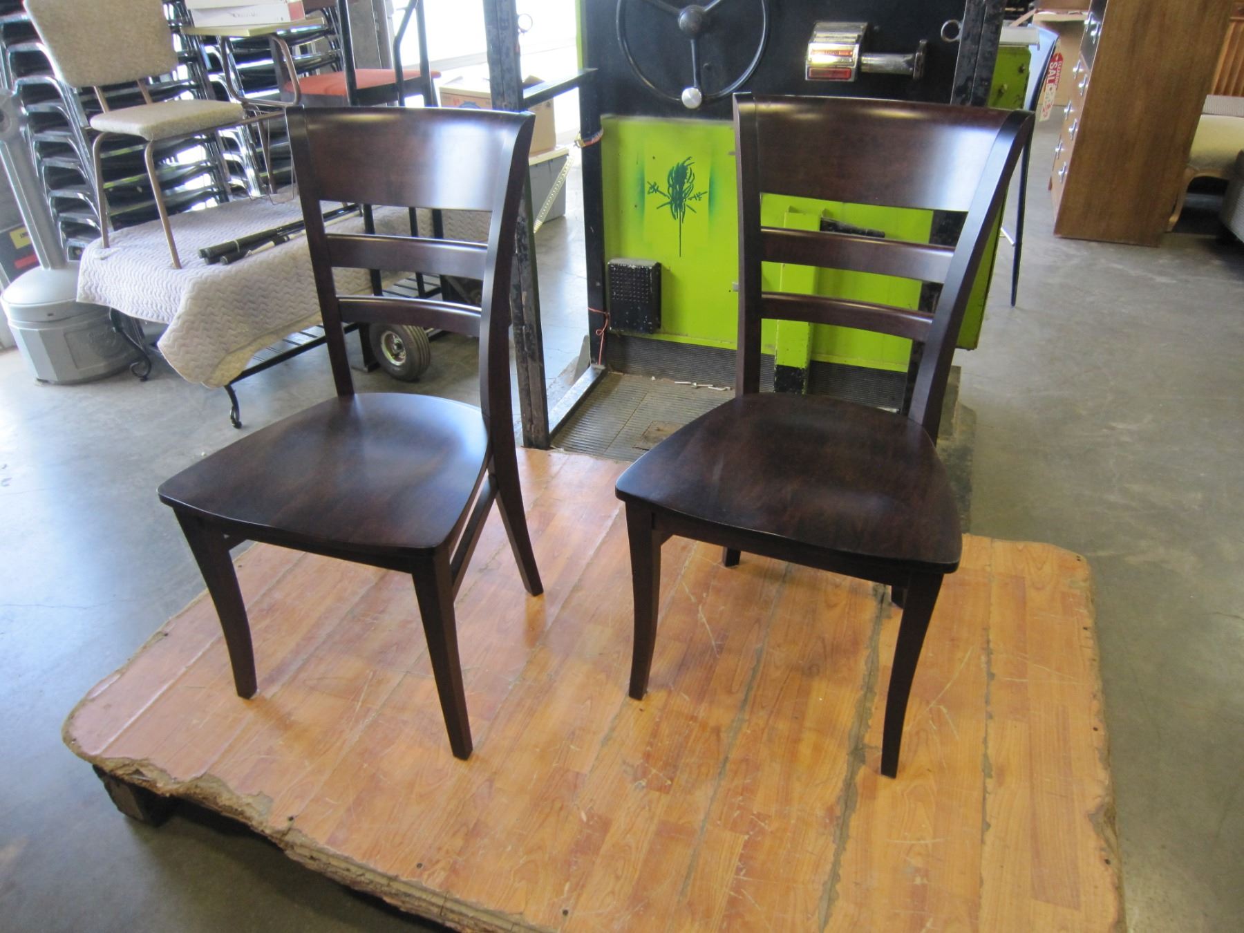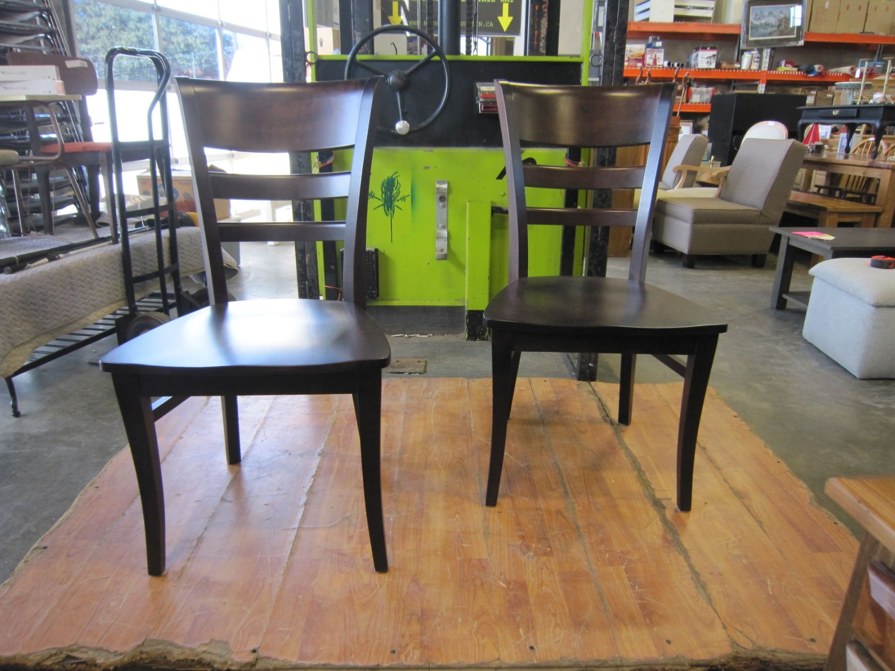 NEW PAIR OF MAPLIE MALIA WOOD SEAT CHAIRS, LOCALLY MADE CORNED BLOCKED AND HICKORY STAIN - WHOLESALE PRICE $295EA, CURRENT RETAIL $449EA