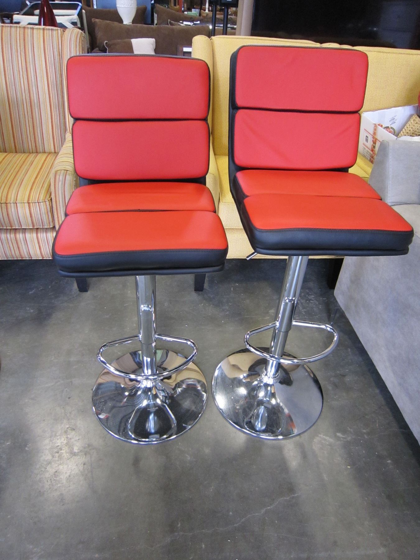 NEW PAIR OF RED AND BLACK LEATHER ADJUSTABLE GAS LIFT BAR STOOLS RETAIL $149 EACH
