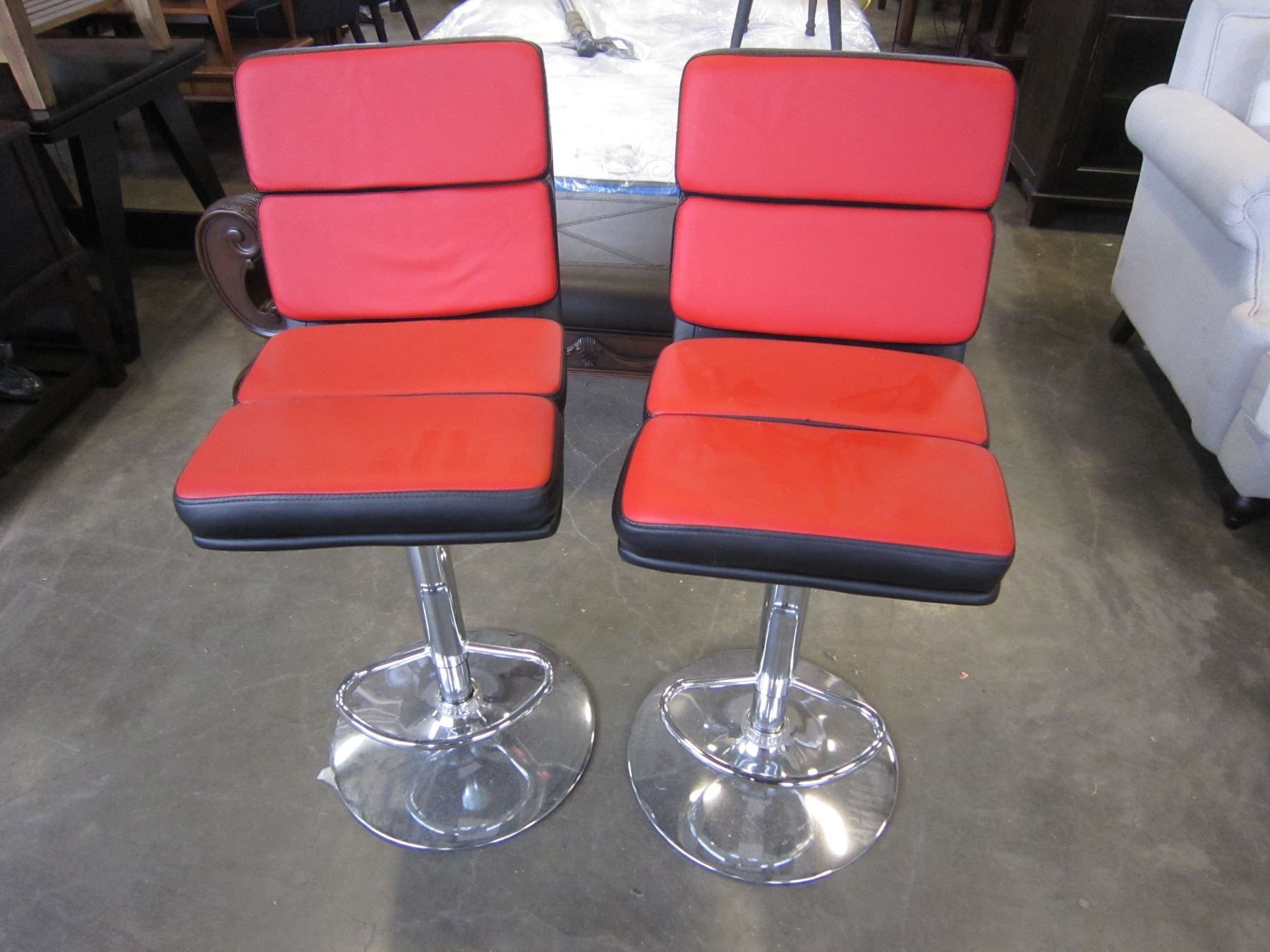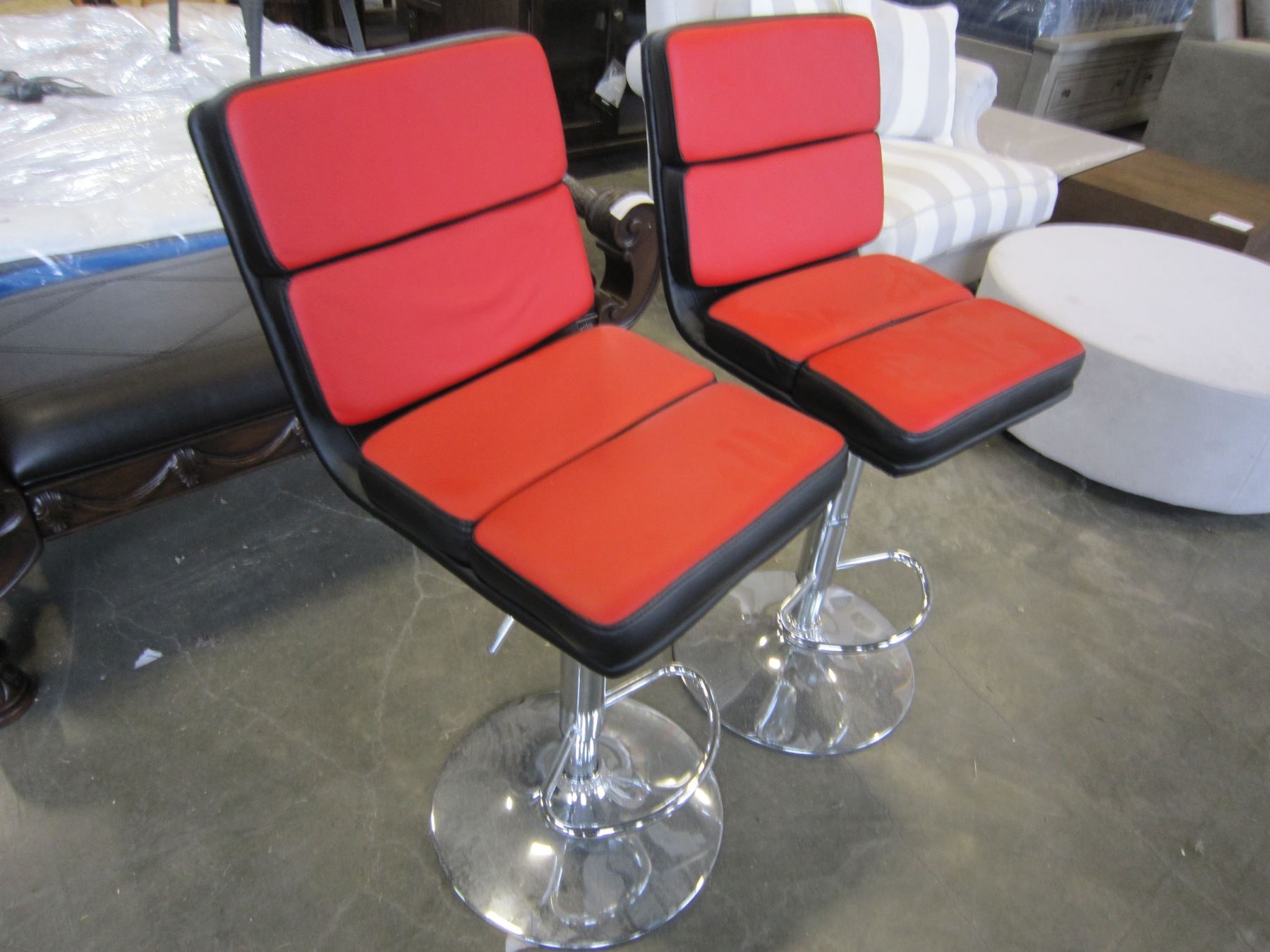 NEW PAIR OF RED AND BLACK LEATHER ADJUSTABLE GAS LIFT BAR STOOLS RETAIL $149 EACH