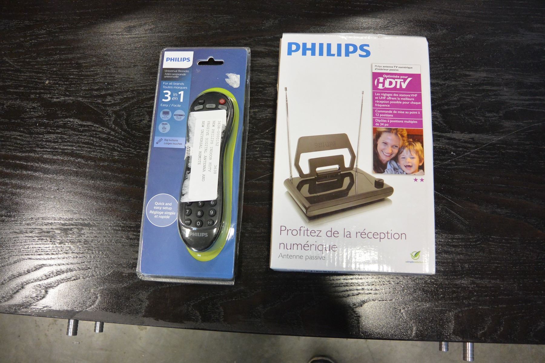 NEW PHILIPS INDOOR HDTV PASSIVE DIGITAL ANTENNA AND NEW UNIVERSAL REMOTE
