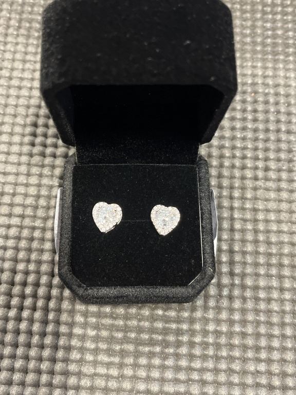 NEW PLATINUM PLATED 1.0CT EACH SIMULATED DIAMOND (CZ) HEART HALO STUD EARRINGS