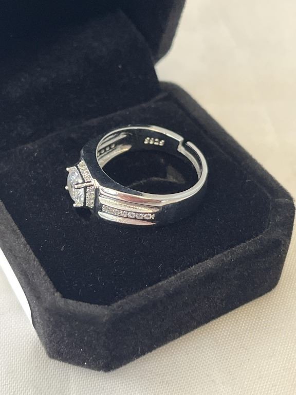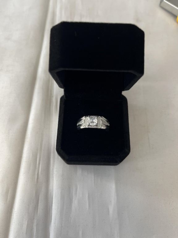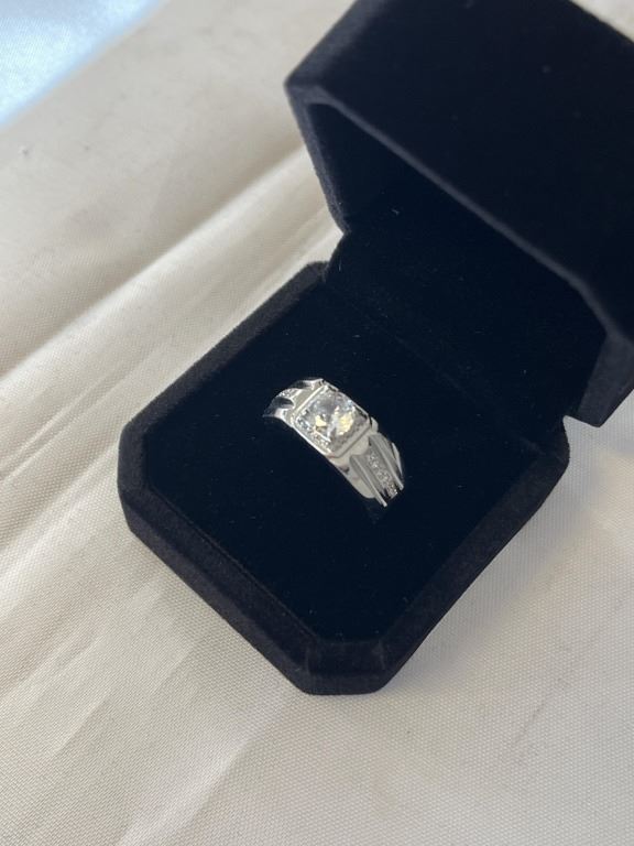 NEW PLATINUM PLATED 1.0CT SIMULATED DIAMOND (CZ) MANS RING, RESIZEABLE