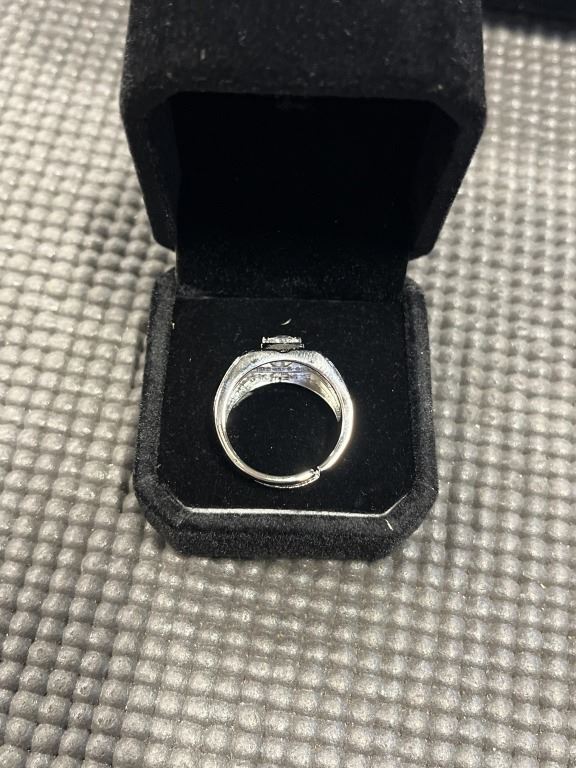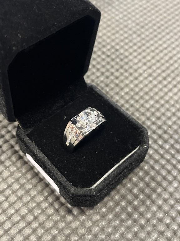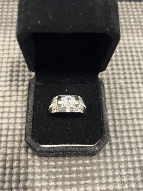 NEW PLATINUM PLATED 1.0CT SIMULATED DIAMOND (CZ) MENS RING, RESIZEABLE