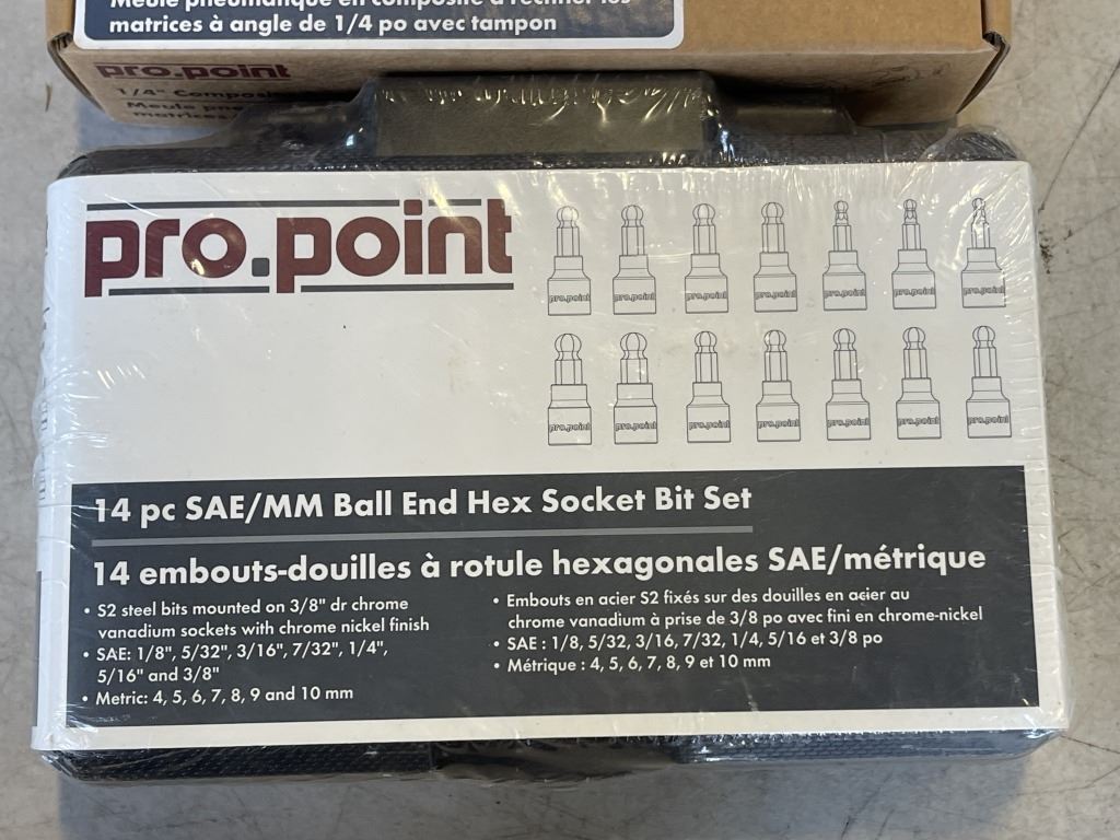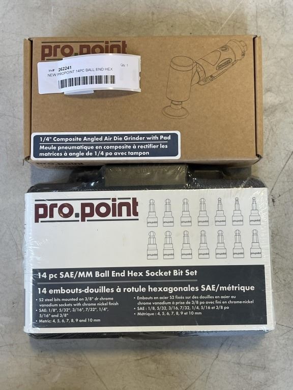 NEW PROPOINT 14PC BALL END HEX SOCKET SET AND 1/4" COMPOSITE ANGLE AIR DIE GRINDER W/ PAD