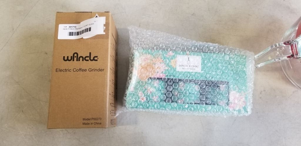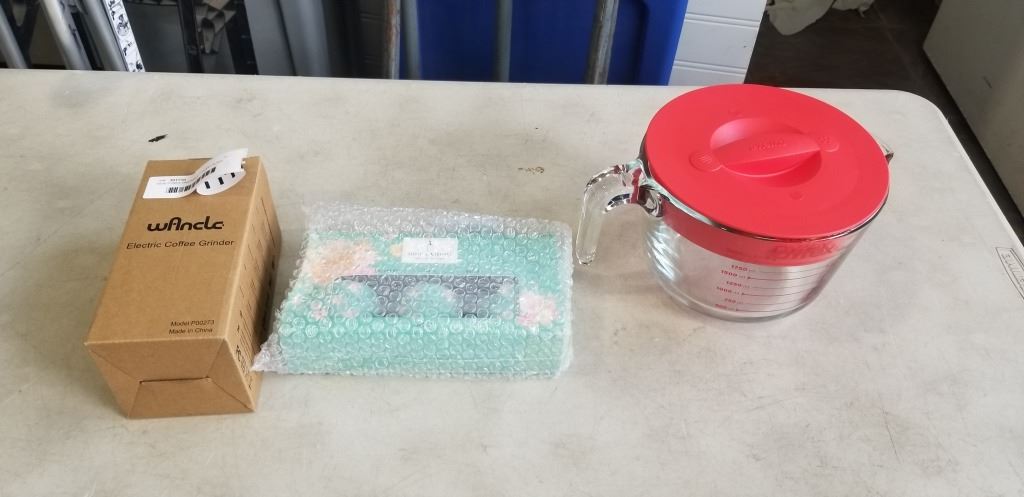 NEW PYREX PREPWARE 2 QUART GLASS MEASURING CUP WITH LID AND ELECTRIC COFFEE GRINDER AND BINCA VIDOU REED DIFFUSER SET