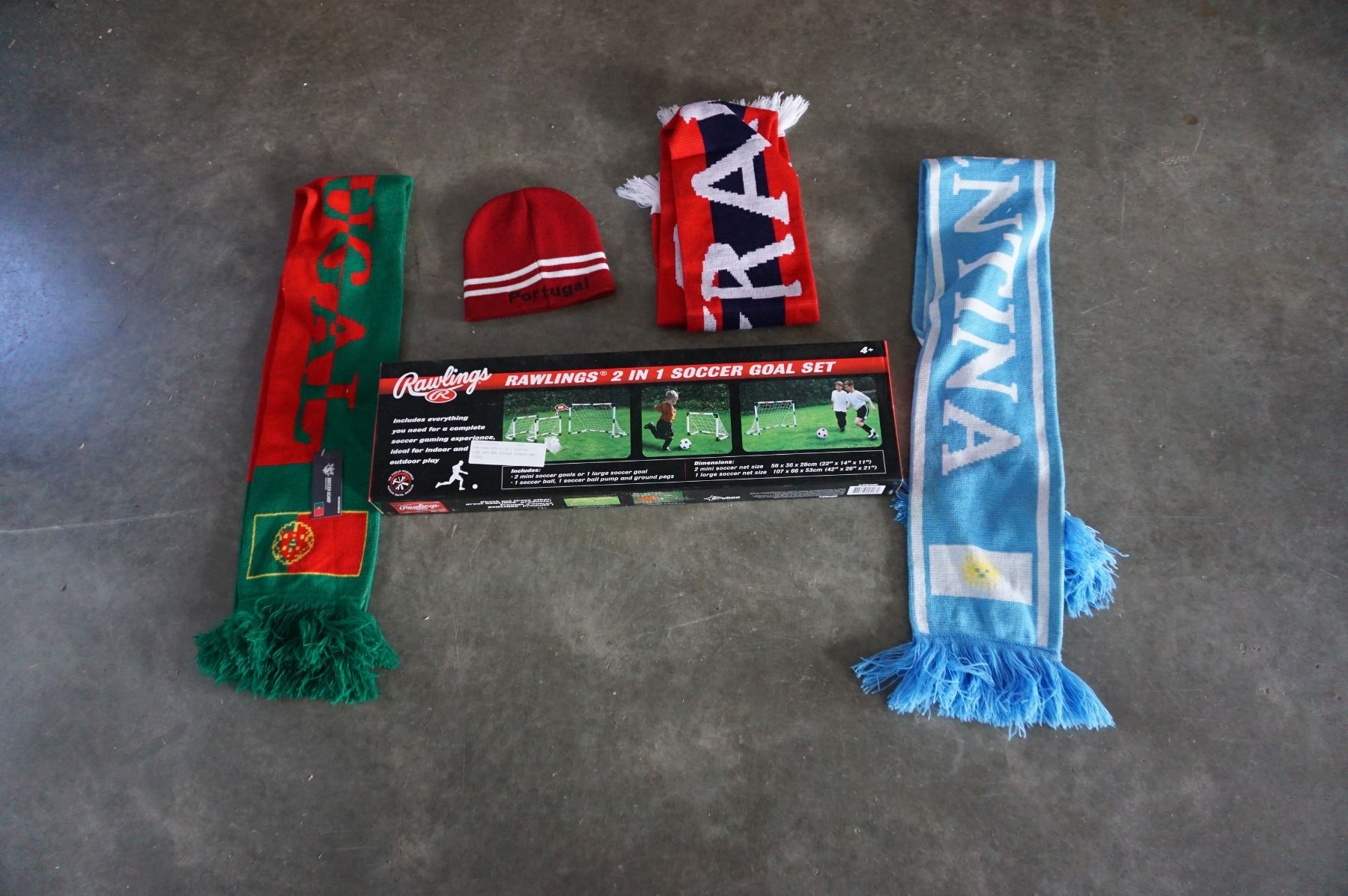 NEW RAWLINGS 2 IN 1 SOCCER GOAL SET AND SOCCER SCARFS AND TOQUE