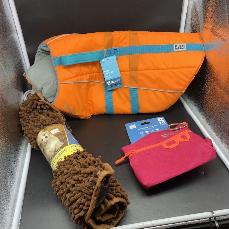 NEW RC PETS SIZE LARGE TIDAL LIFE VEST, QUICK GRAB TREAT BAG AND ULTIMAT FOR DOG