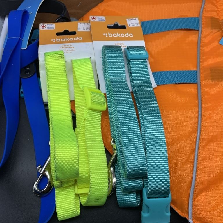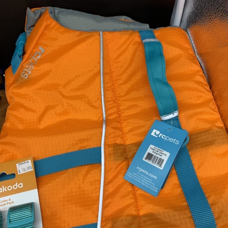 NEW RC PETS TIDAL LIFE VEST SIZE XL, QUICK GRAB TREAT BAG, WATERPROOF DOG LEASH AND COLLAR AND LEASH PACKS RETAIL $150