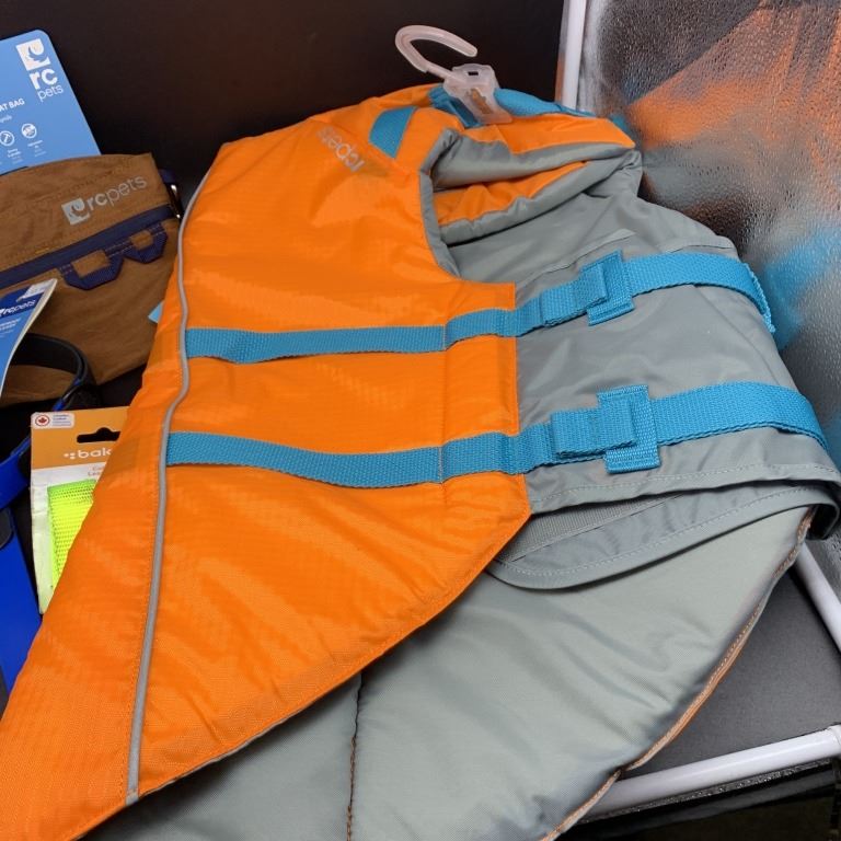 NEW RC PETS TIDAL LIFE VEST SIZE XL, QUICK GRAB TREAT BAG, WATERPROOF DOG LEASH AND COLLAR AND LEASH