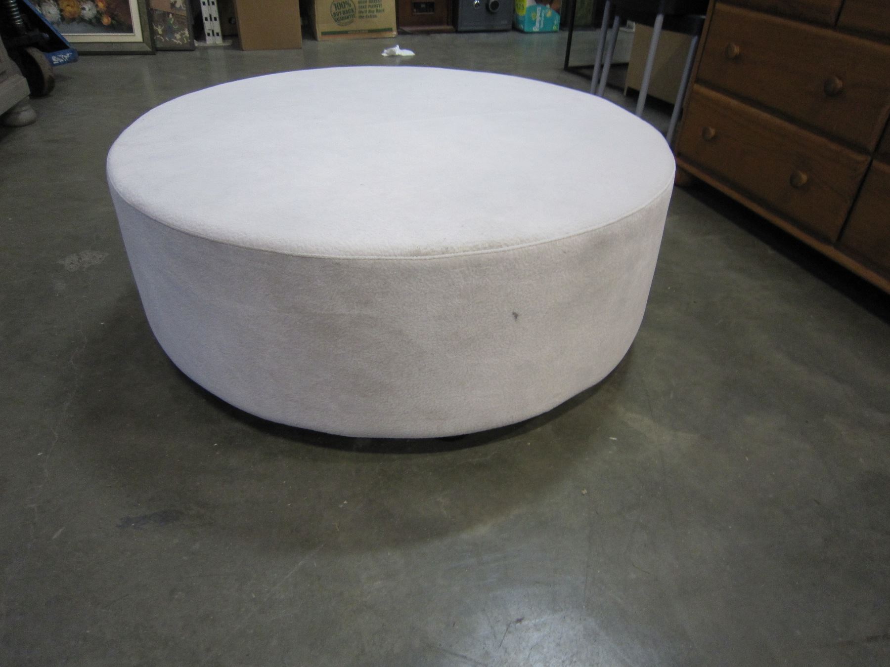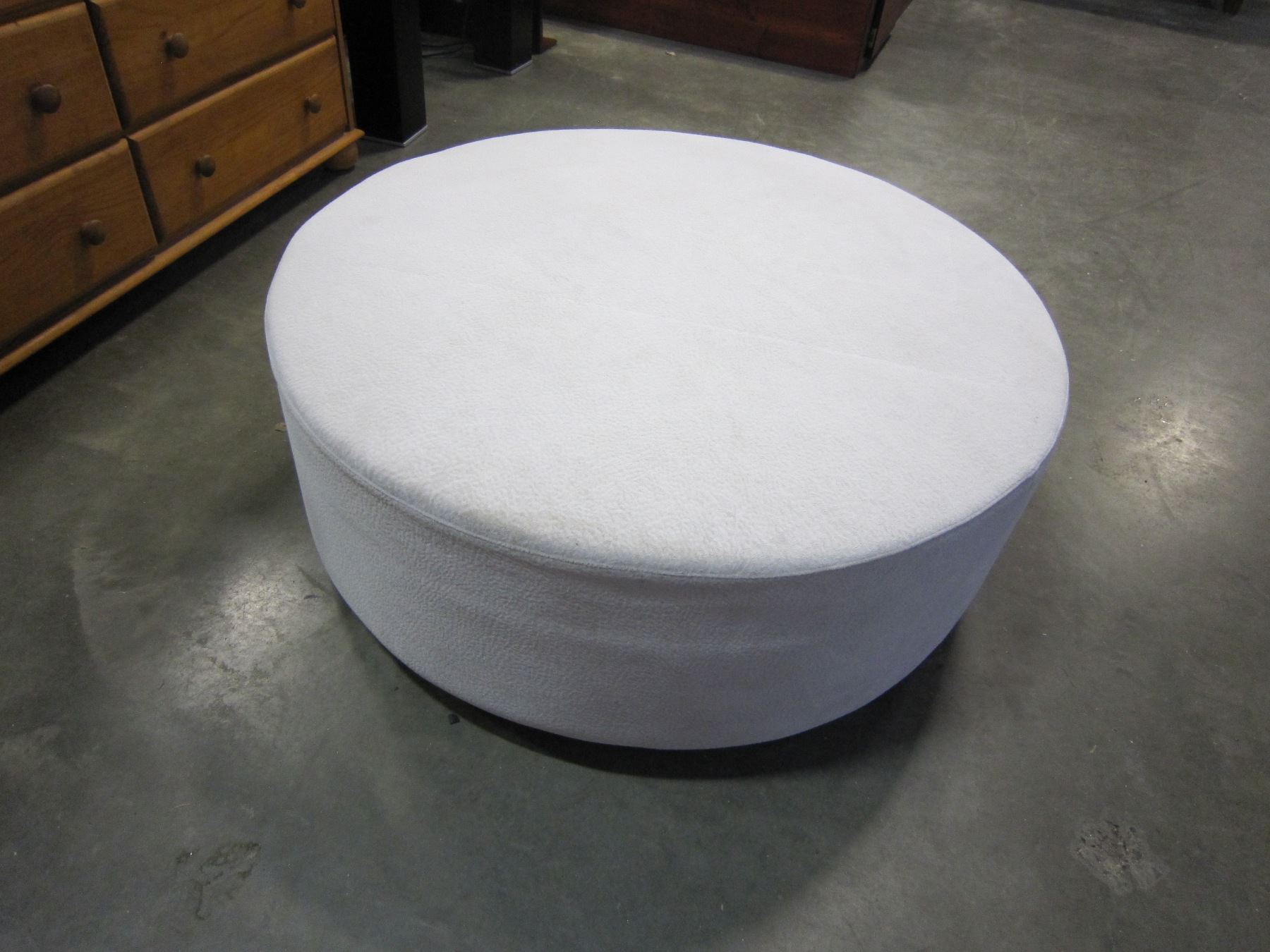 NEW ROUND MODERN LIGHT GREY MICROFIBER OTTOMAN - $699