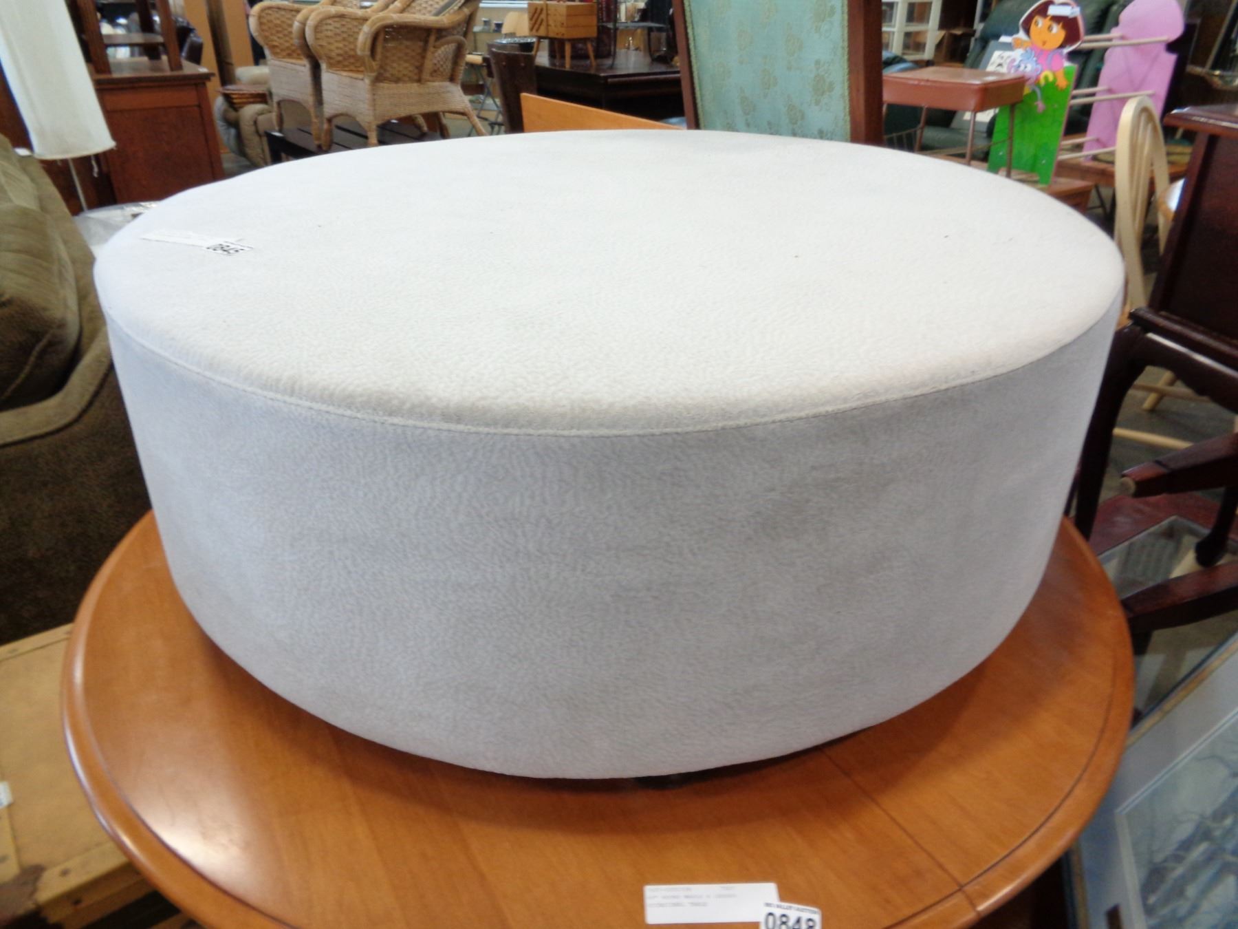 NEW ROUND MODERN LIGHT GREY MICROFIBER OTTOMAN - $699
