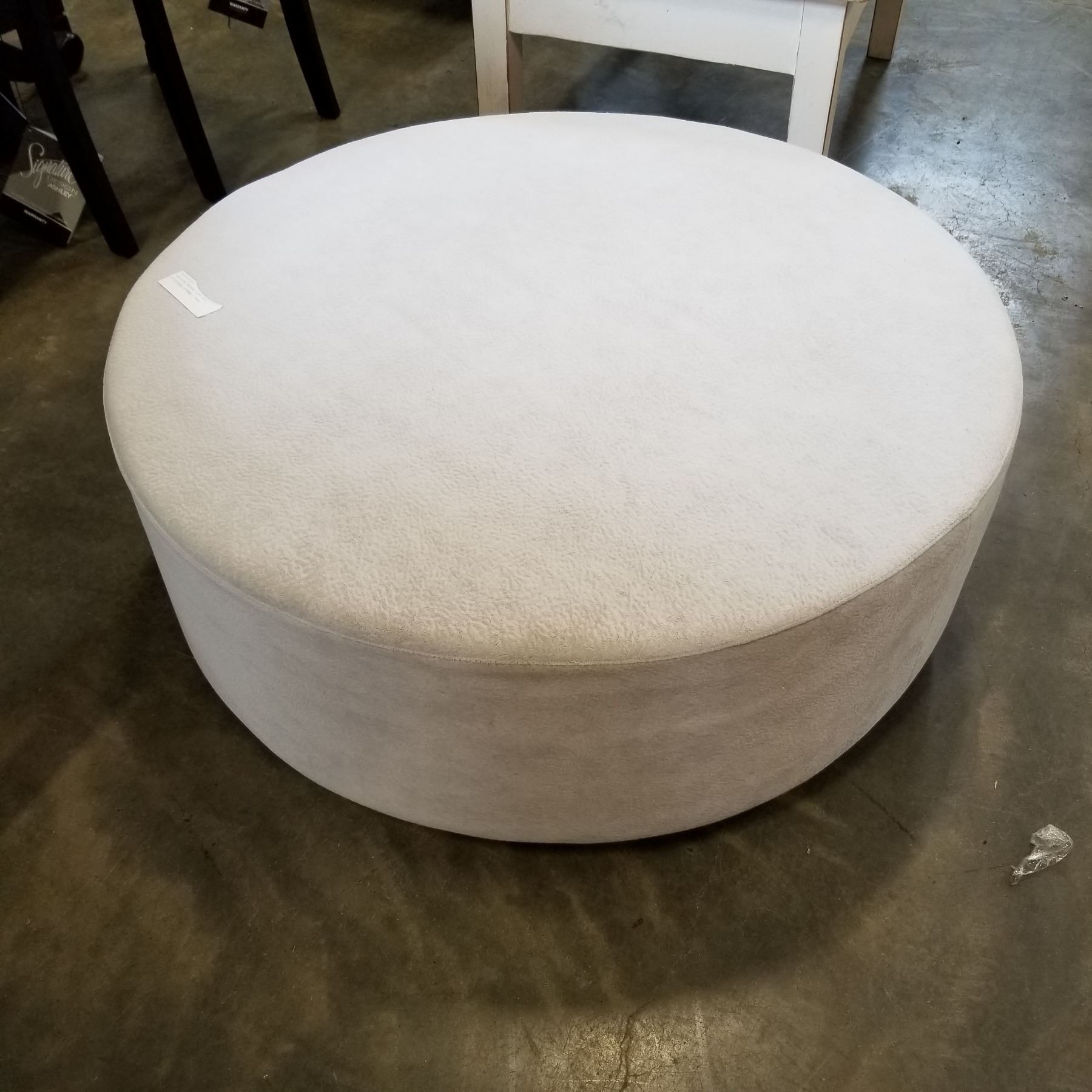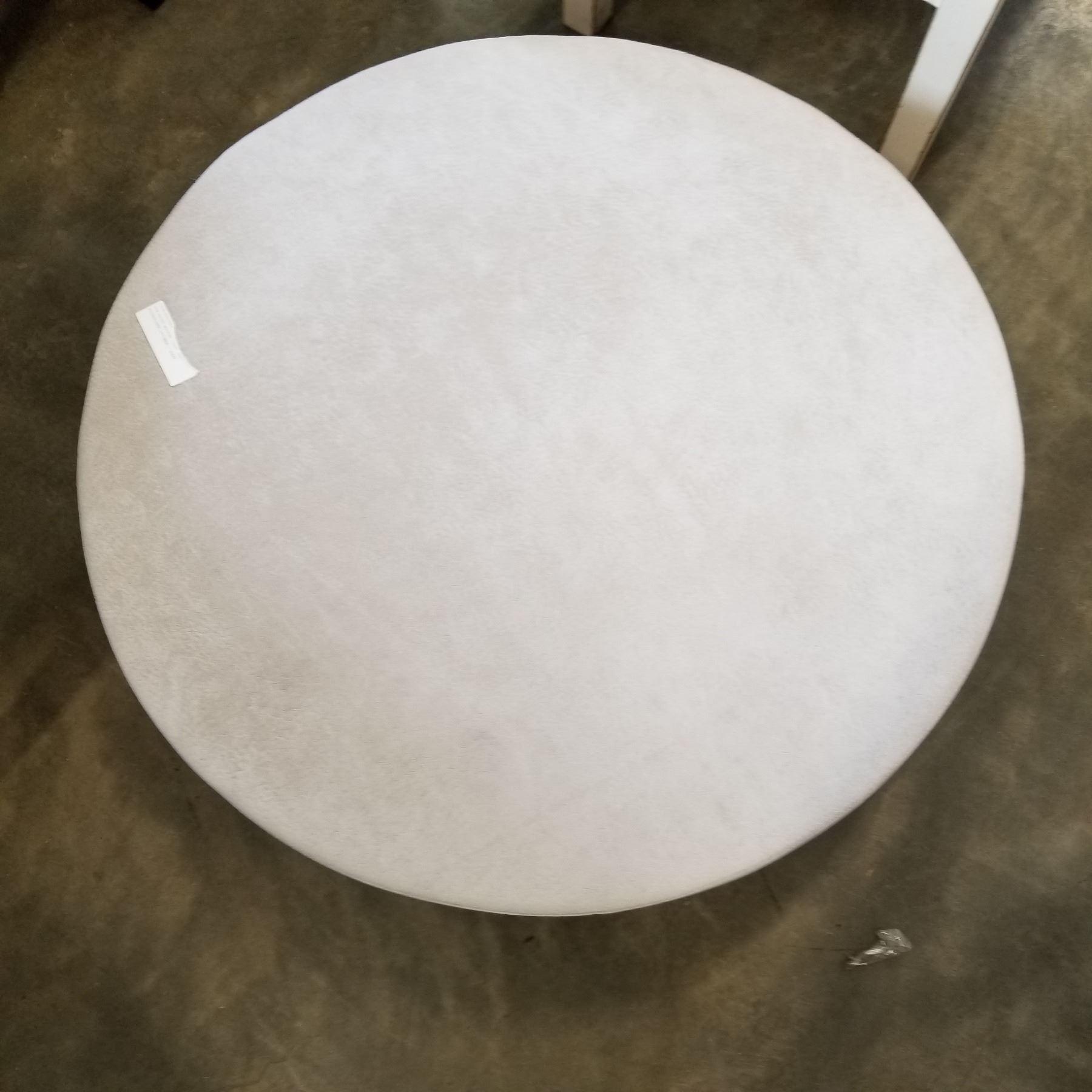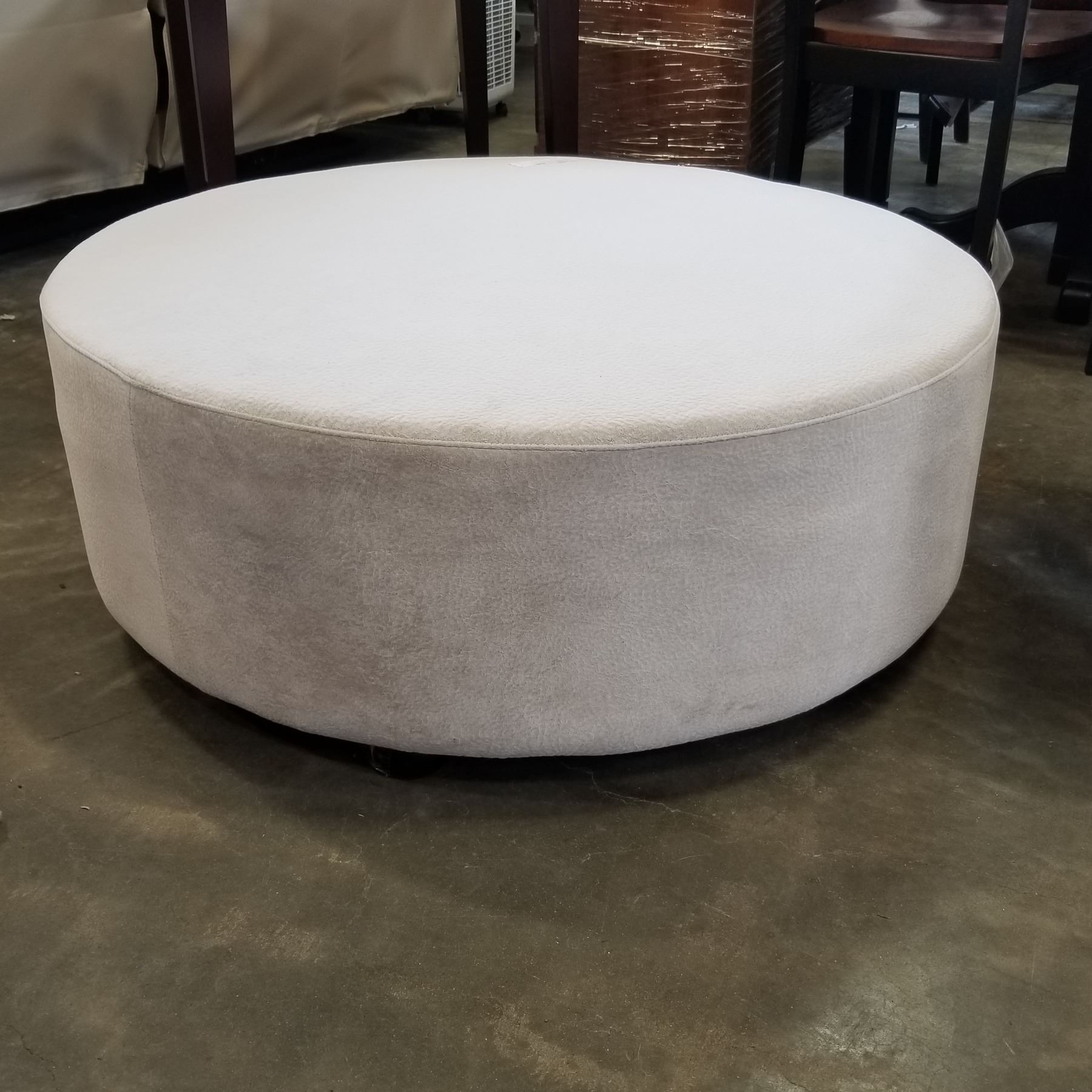 NEW ROUND MODERN LIGHT GREY MICROFIBER OTTOMAN - $699