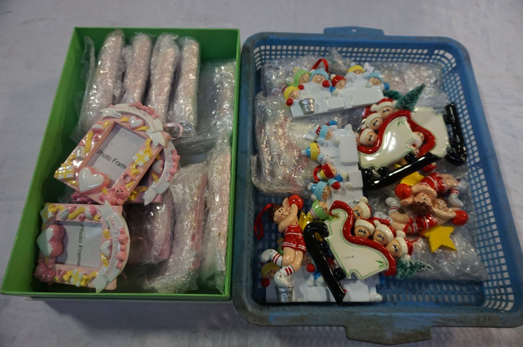 NEW RUDOLPH AND ME CHRISTMAS ORNAMENTS AND 2 BOXES OF BLUE AND CLEAR ORGANIZERS