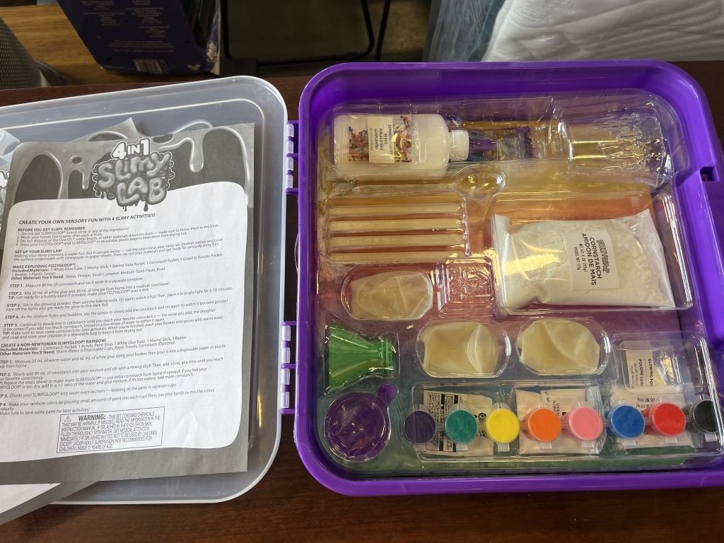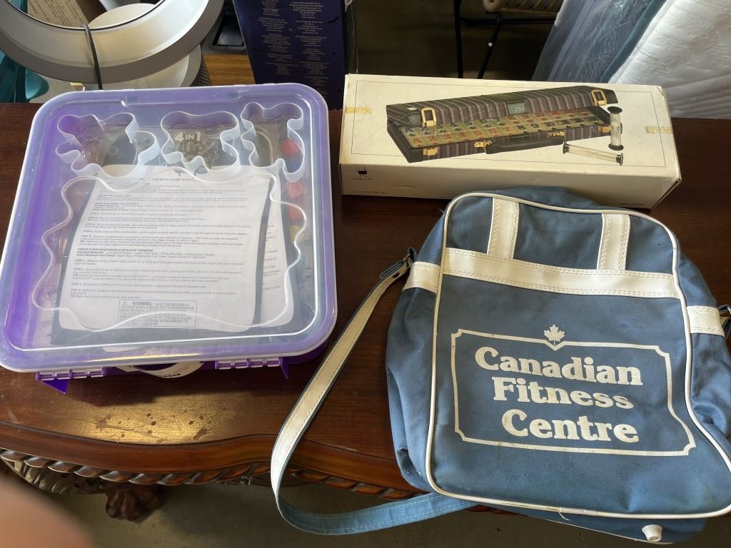 NEW RUMMY GAME IN CASE, SLIME LAB KIT AND CANADIAN FITNESS BAG