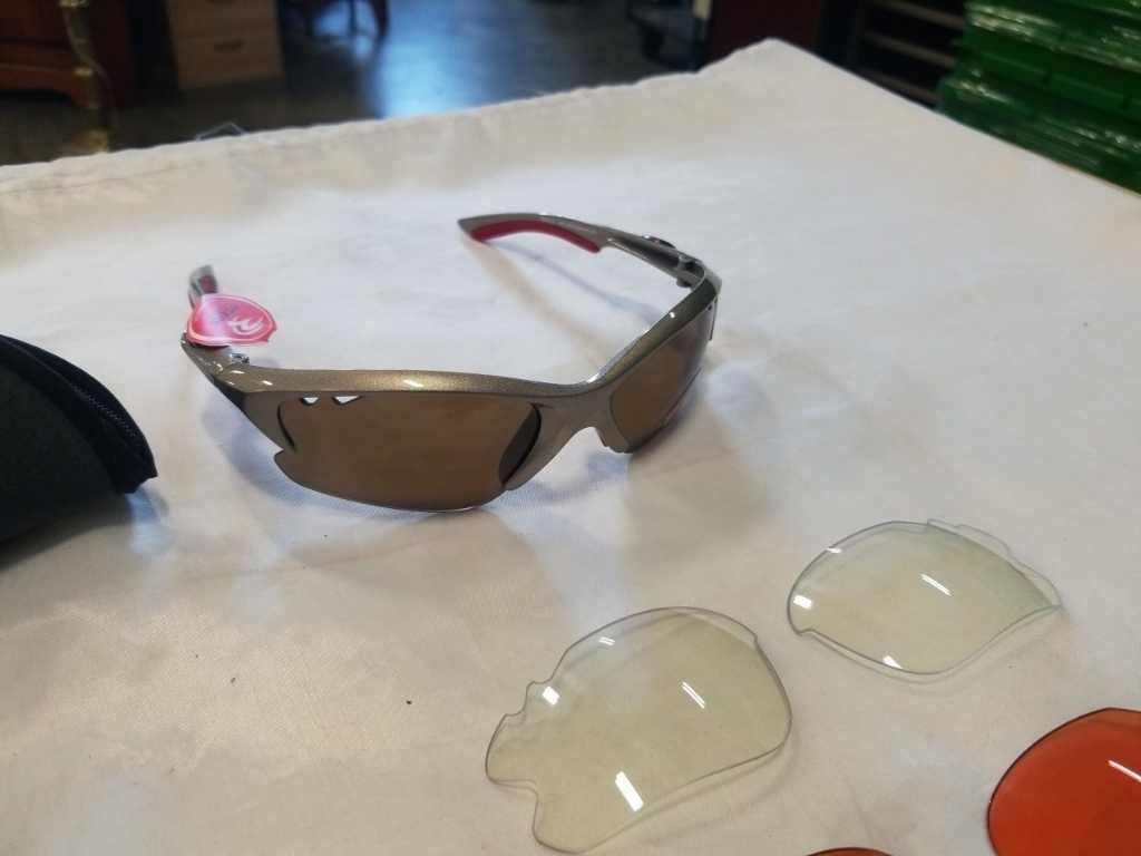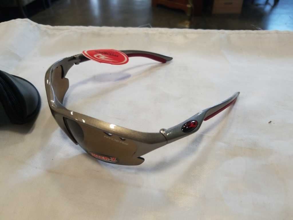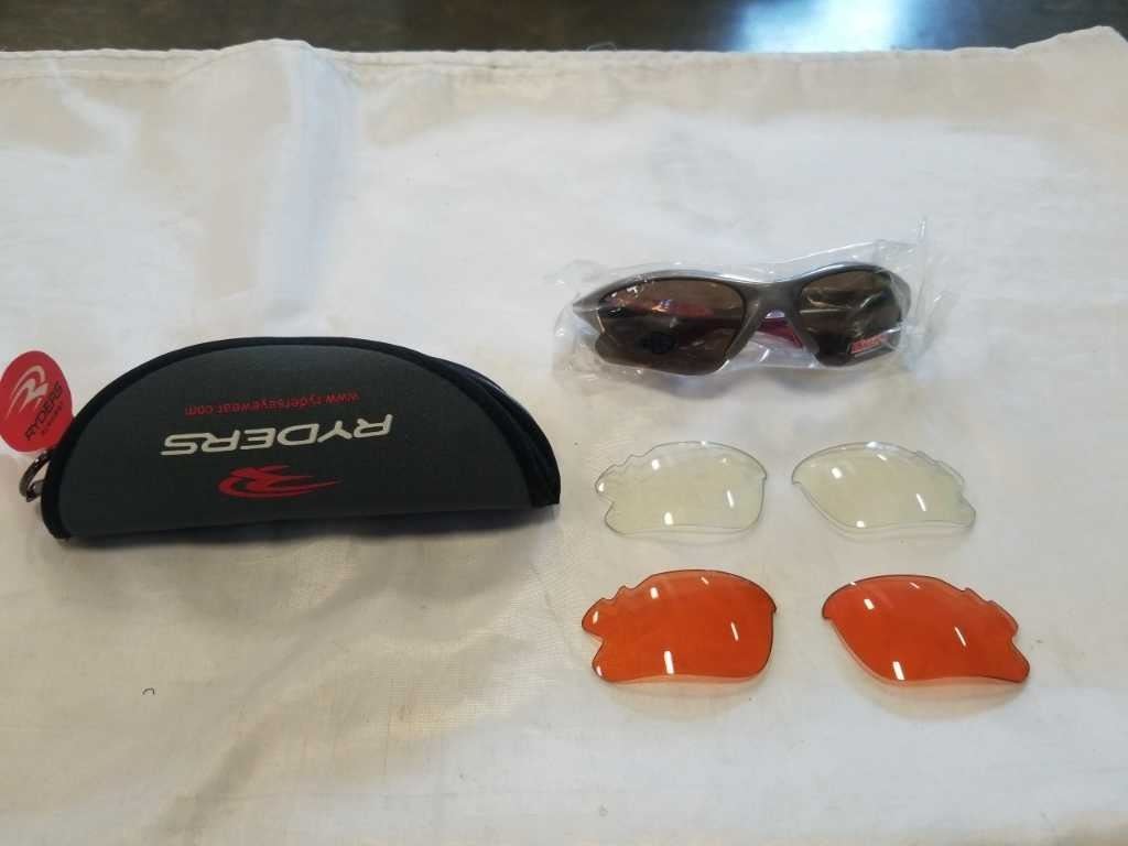 NEW RYDERS R136 RTX GREY AND RED SUNGLASSES WITH INTERCHANGEABLE LENSES AND CASE