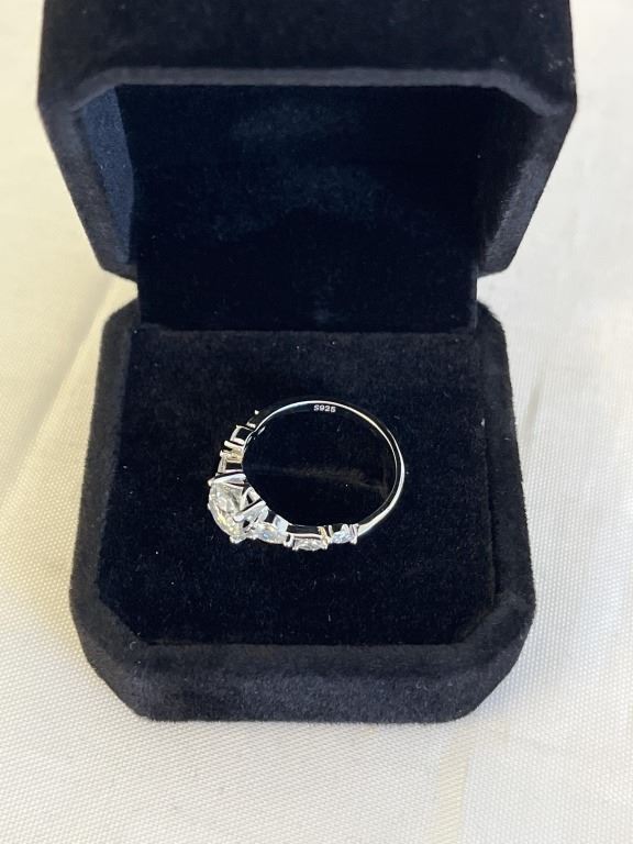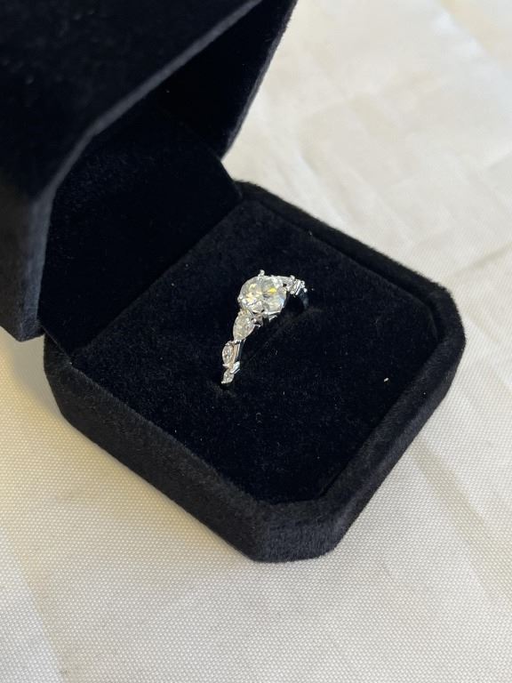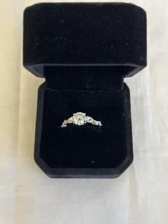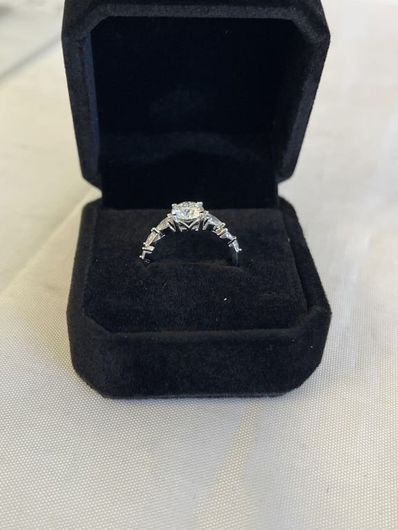 NEW S925 1.0CT MOISSANITE LAB DIAMOND LADIES RING, MOUNTED IN 925 STERLING SILVER W/ WHITE GOLD OVER