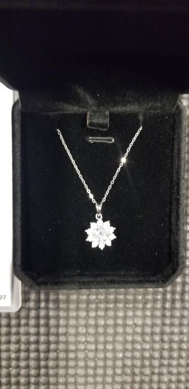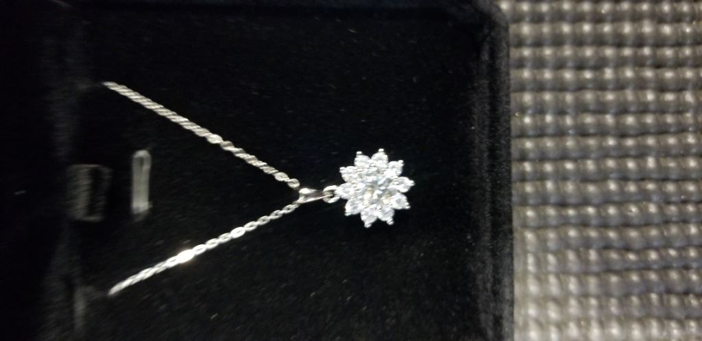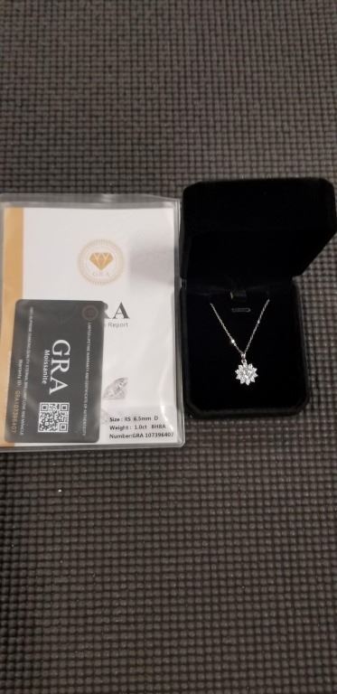 NEW S925 1.0CT MOISSANITE LAB DIAMOND SUNFLOWER NECKLACE, MOUNTED IN 925 STERLING SILVER W/ WHITE GOLD OVERLAY, D, VVS1, GRA REPORT