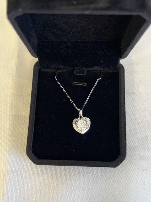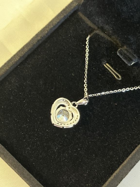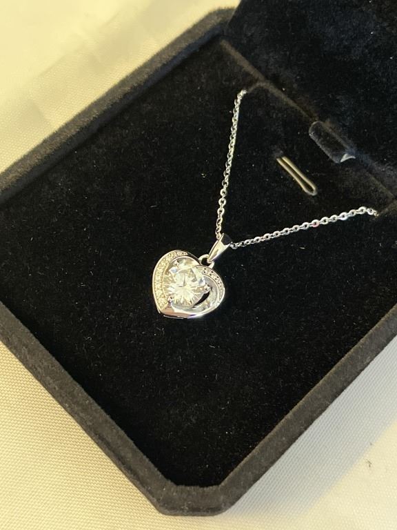 NEW S925 1.5CT STIMULATED DIAMOND (CZ) HEART HALO NECKLACE 16"-18" LONG, MOUNTED IN 925 STERLING SILVER