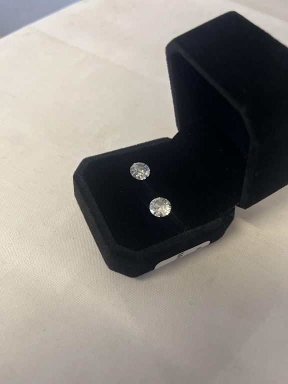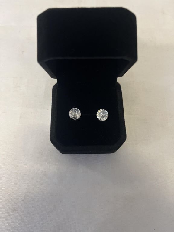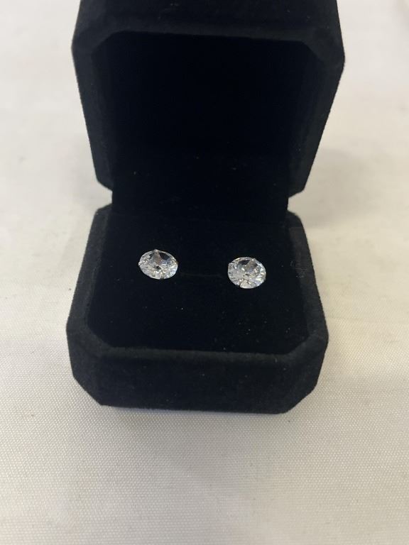 NEW S925 2.0CT EACH SIMULATED DIAMOND (CZ) STUD EARRINGS, MOUNTED IN 925 STERLING SILVER W/ WHITE GOLD OVERLAY