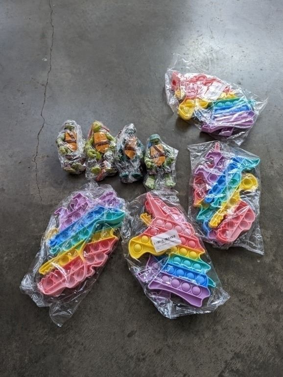 NEW SET OF 4 TMNT NINJA TURTLE ACTION FIGURES AND 4 NEW FIDGIT POPPET SETS