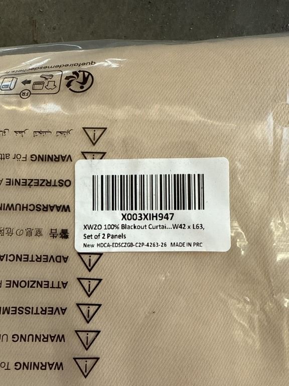NEW SET OF BEIGE THERMAL INSULATED BLACKOUT CURTAINS, 2 PANELS, 42 X 63 INCH EACH