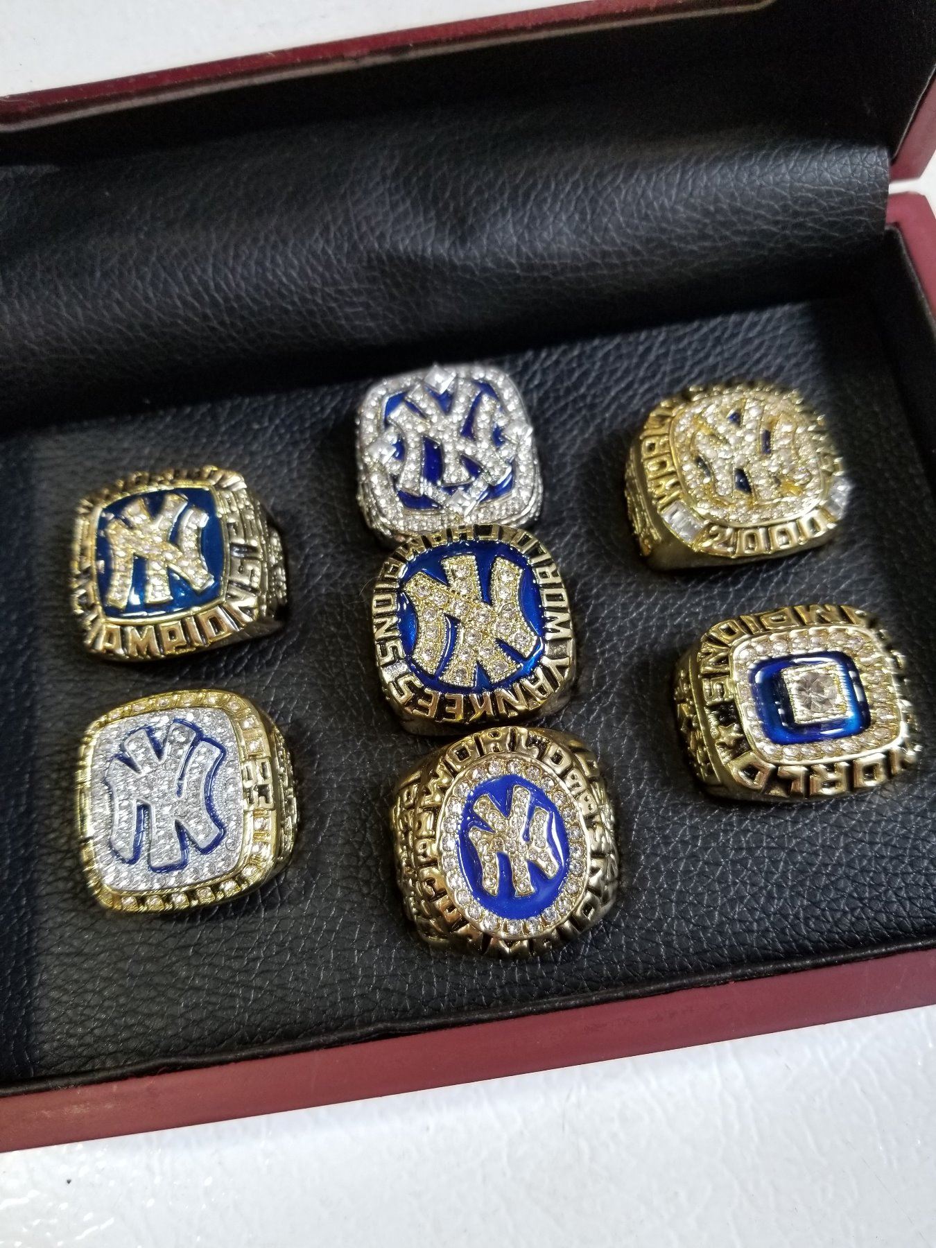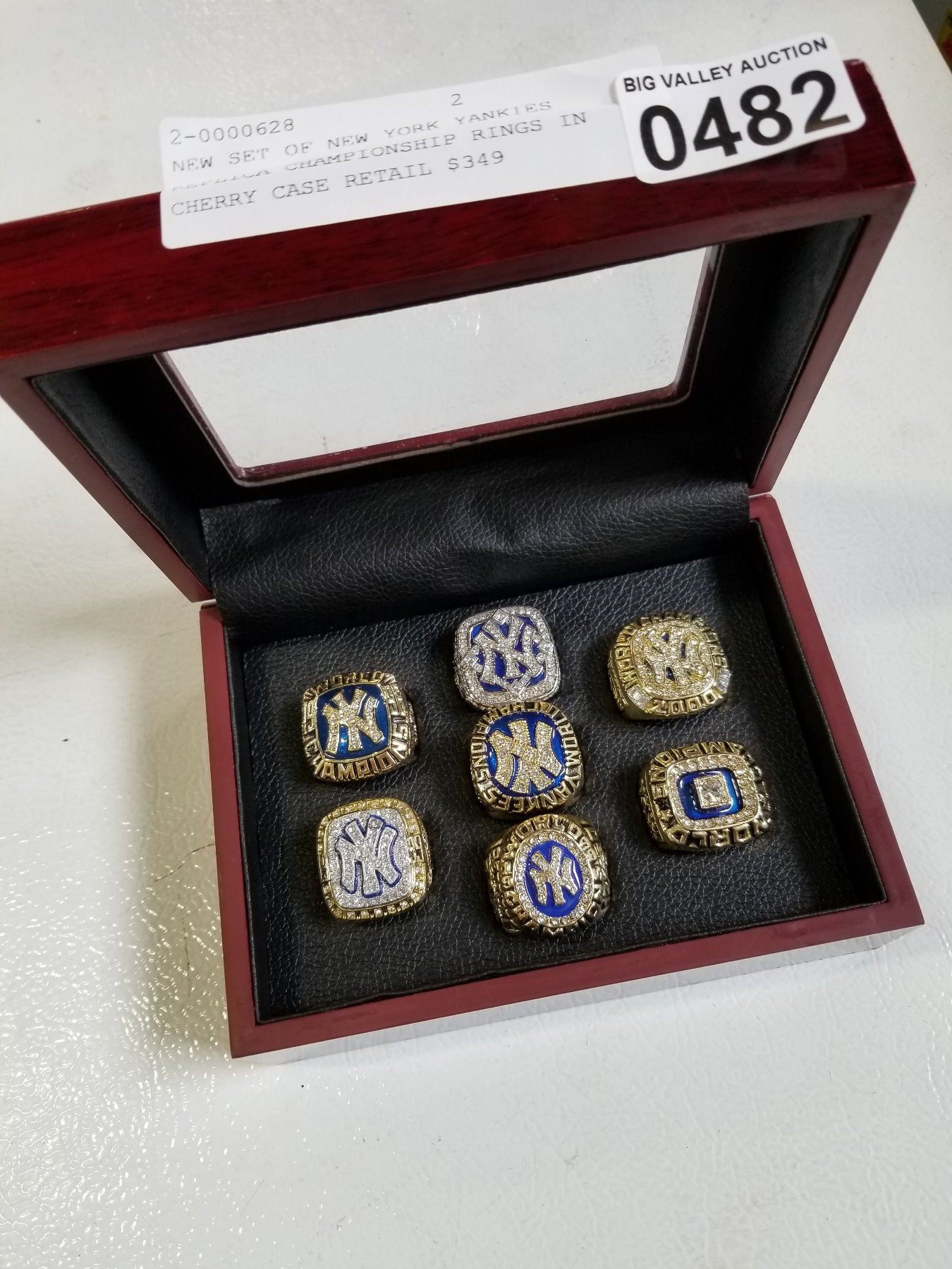NEW SET OF NEW YORK YANKIES REPLICA CHAMPIONSHIP RINGS IN CHERRY CASE RETAIL $349