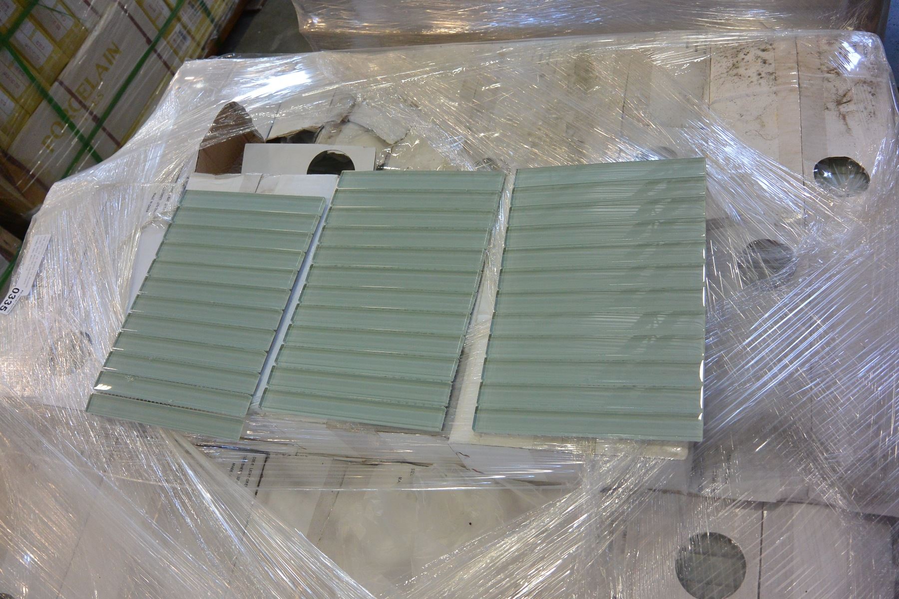 NEW SKID OF 64 BOXES OF MODERN LIGHT GREY MOSIAC BACKSPLASH SHOWER AND WALL TILE