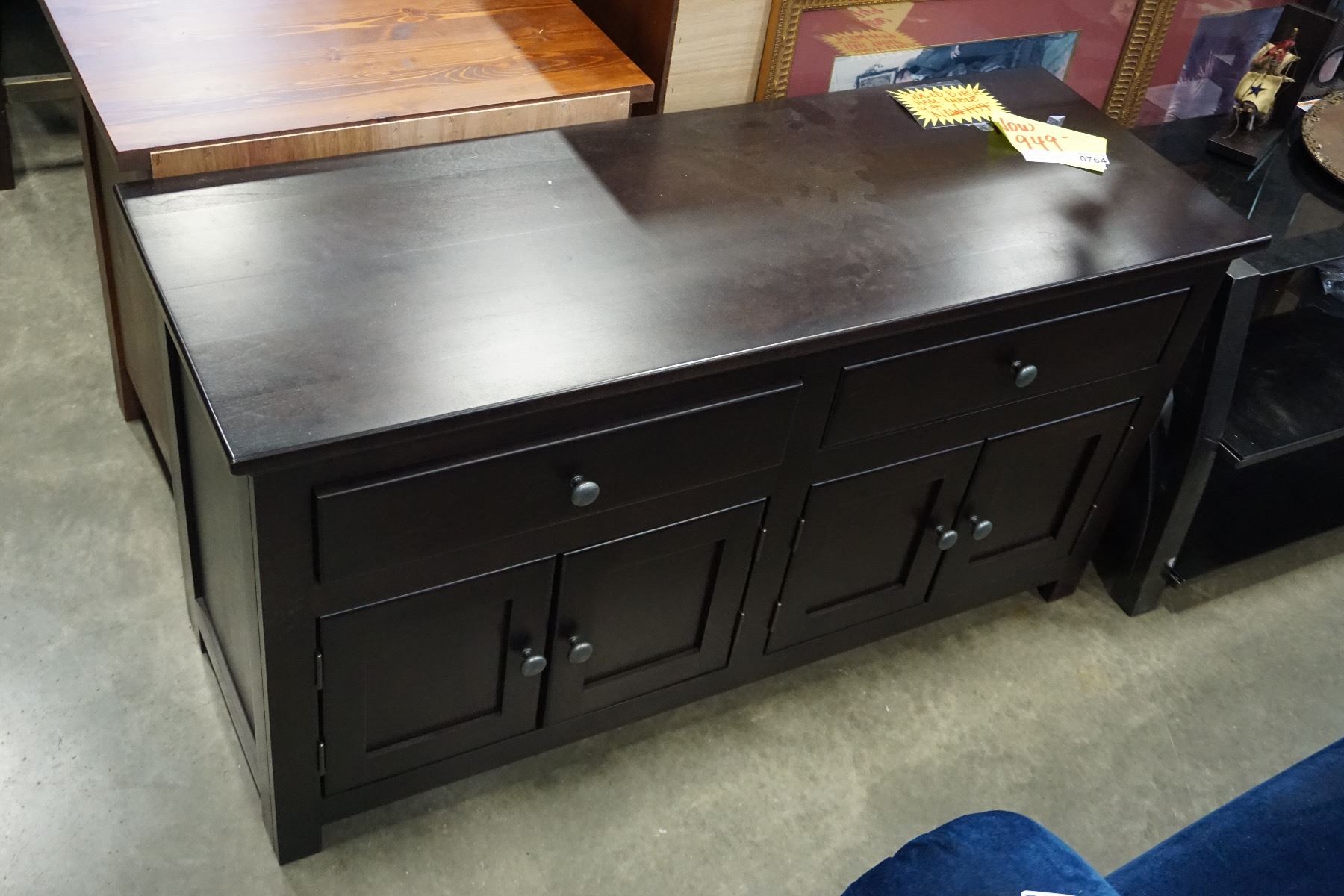 NEW SOLID BIRCH SHAKER MEDIA STAND, WITH 2 DRAWERS AND 2 WOOD PANEL DOORS, HICKORY STAIN, DOVETAILED DRAWERS, FULL EXTENSION ACCURIDE GLIDES, BRUSHED PEWTER KNOBS, 50WX18DX26H WHOLESALE COST IS $975 CURRENT RETAIL IS $1469