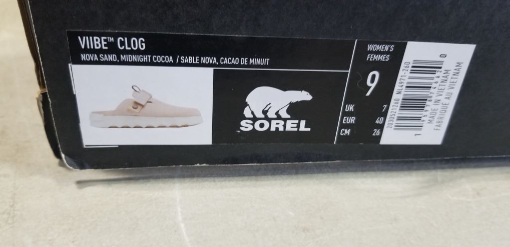 NEW SOREL VIBE CLOG NOVA SAND, MIDNIGHT COCOA, SIZE US WOMENS 9