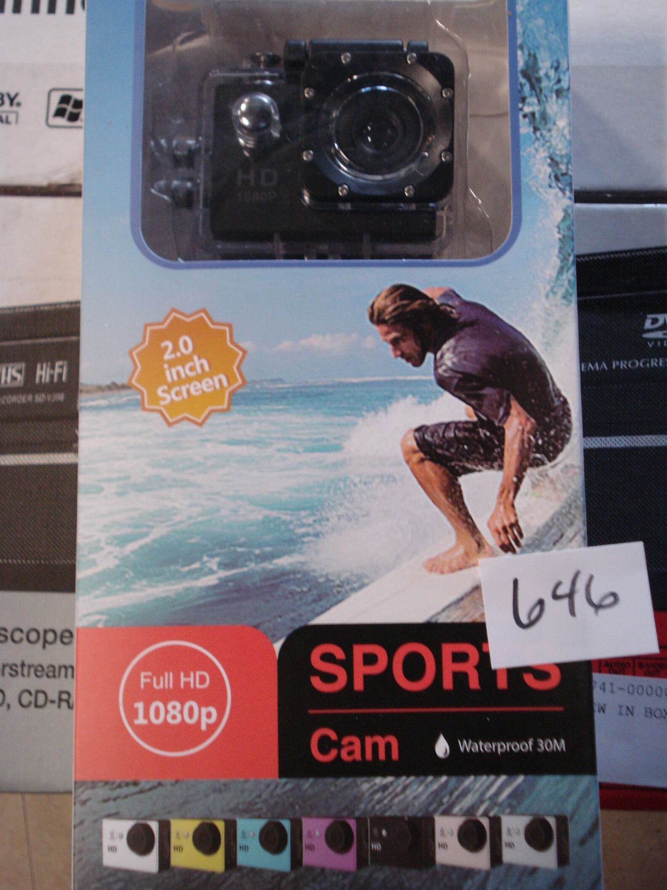 NEW SPORTS ACTION CAMERA, 1080P, WATERPROOF TO 30M, WITH ACCESSORIES AND MOUNTS RETAIL $149