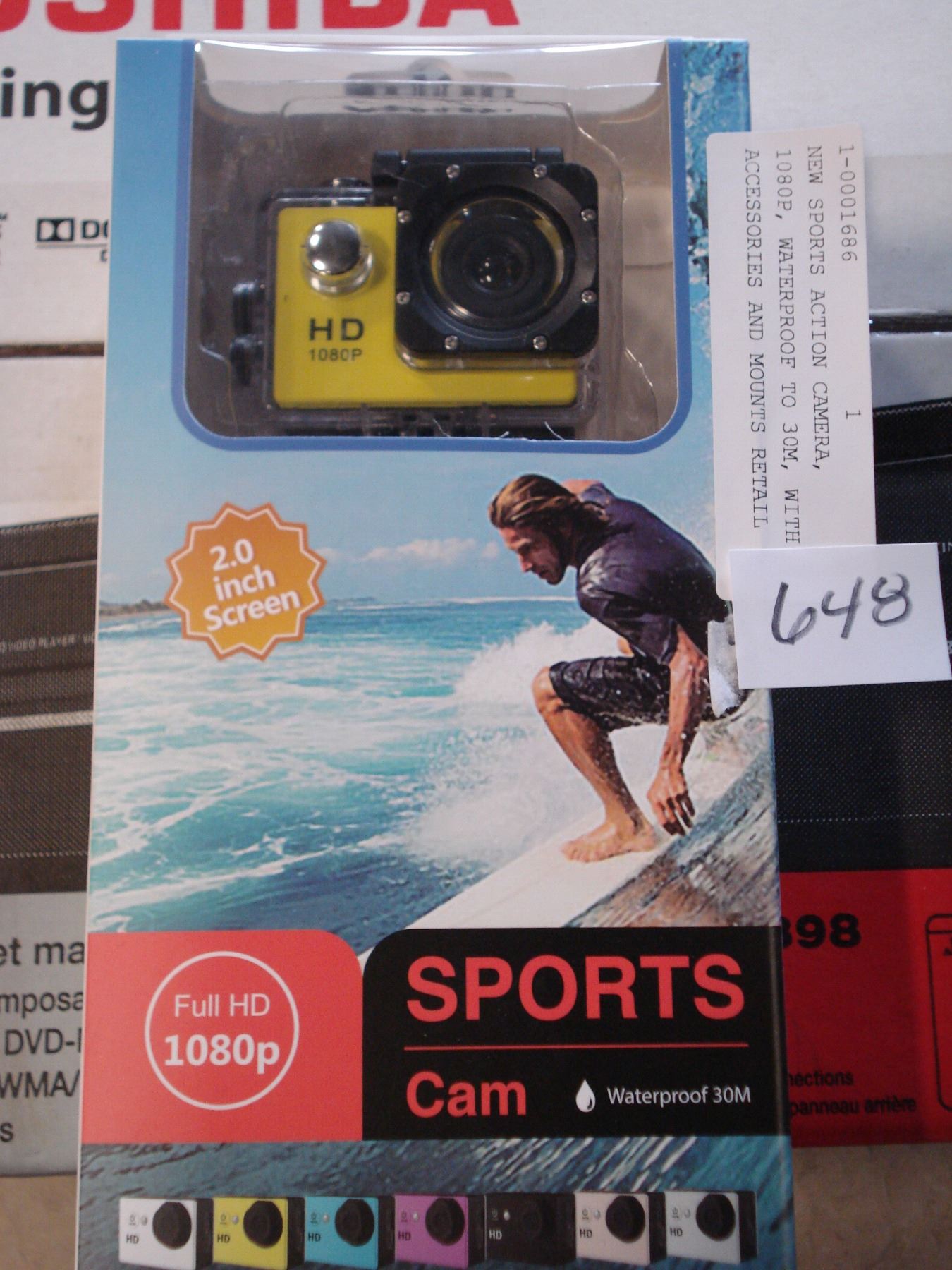 NEW SPORTS ACTION CAMERA, 1080P, WATERPROOF TO 30M, WITH ACCESSORIES AND MOUNTS RETAIL $149