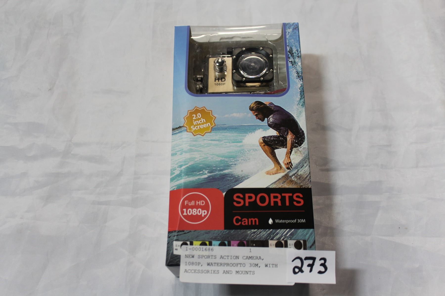 NEW SPORTS ACTION CAMERA, 1080P, WATERPROOFTO 30M, WITH ACCESSORIES AND MOUNTS