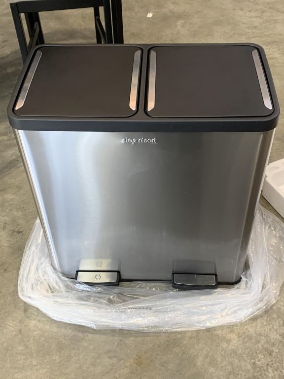 NEW STEP N SORT 70L 2 BIN STAINLESS GARBAGE CAN