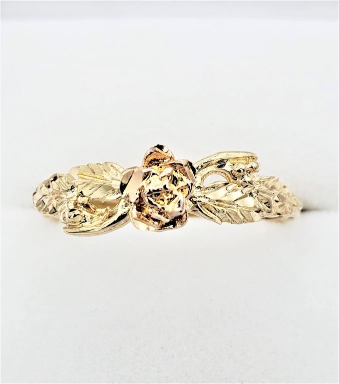 NEW STERLING SILVER 10KT. ROSE GOLD PLATED ROSE MOTIF RING, SIZE 6.5, W/A $850.00