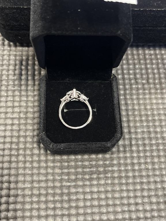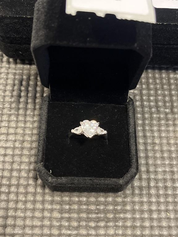 NEW STERLING SILVER 2.0CT HEART CUT SIMULATED DIAMOND (CZ) TRINITY RING W/ PEAR SIDESTONES, SIZE 7 MOUNTED IN 925 STERLING SILVER W/ WHITE GOLD OVERLAY