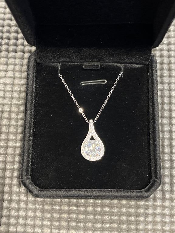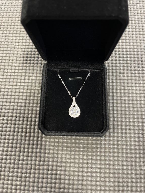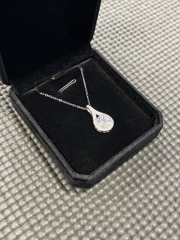 NEW STERLING SILVER 3.0CT SIMULATED DIAMOND (CZ) TEARDROP NECKLACE, ADJUSTABLE 16" TO 18" MOUNTED IN 925 STERLING SILVER W/ WHITE GOLD OVERLAY