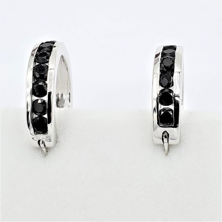 NEW STERLING SILVER GENUINE BLACK SAPPHIRE HOOP EARRINGS W/ APPRAISAL $955