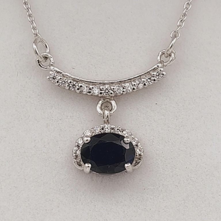 NEW STERLING SILVER GENUINE BLUE SAPPHIRE AND CZ NECKLACE W/ APPRAISAL $720