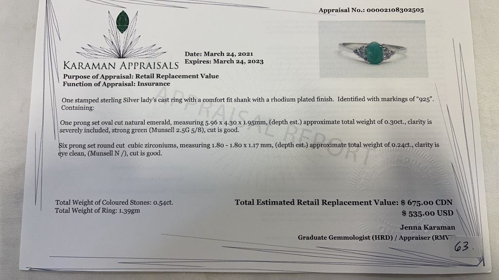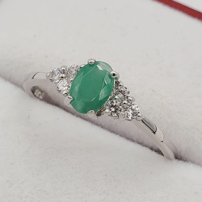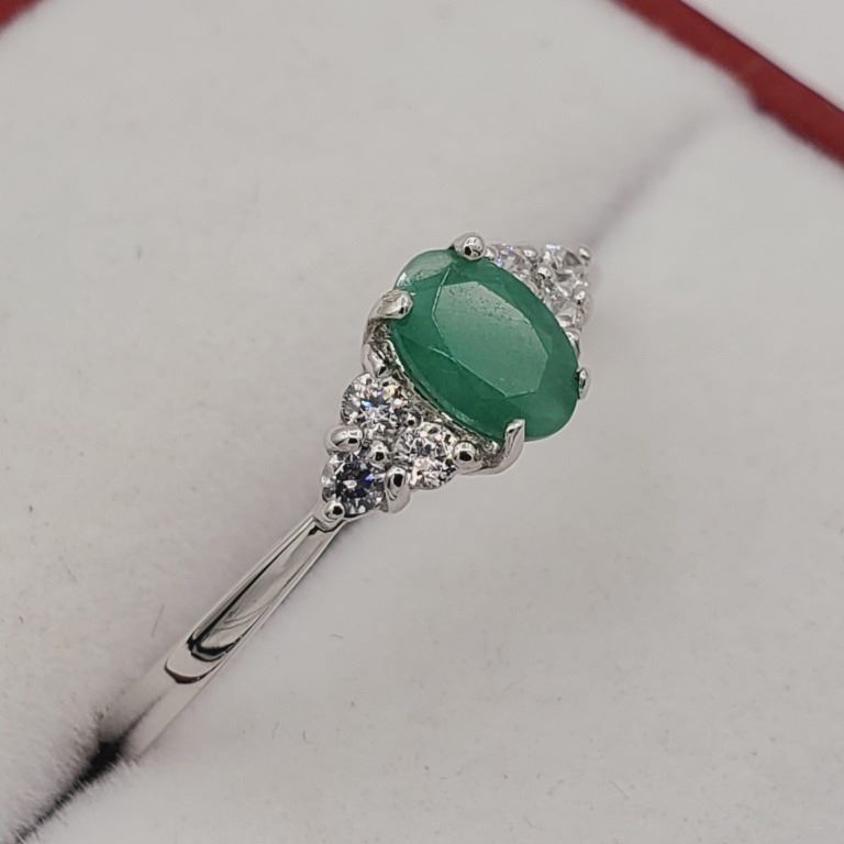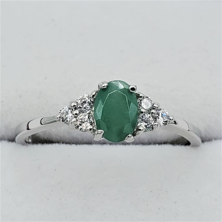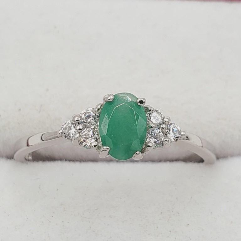 NEW STERLING SILVER GENUINE EMERALD AND CZ RING W/ APPRAISAL $675