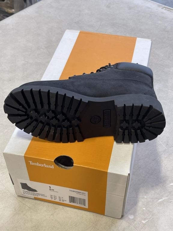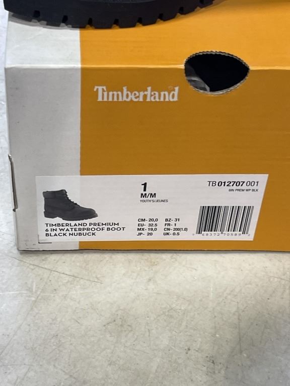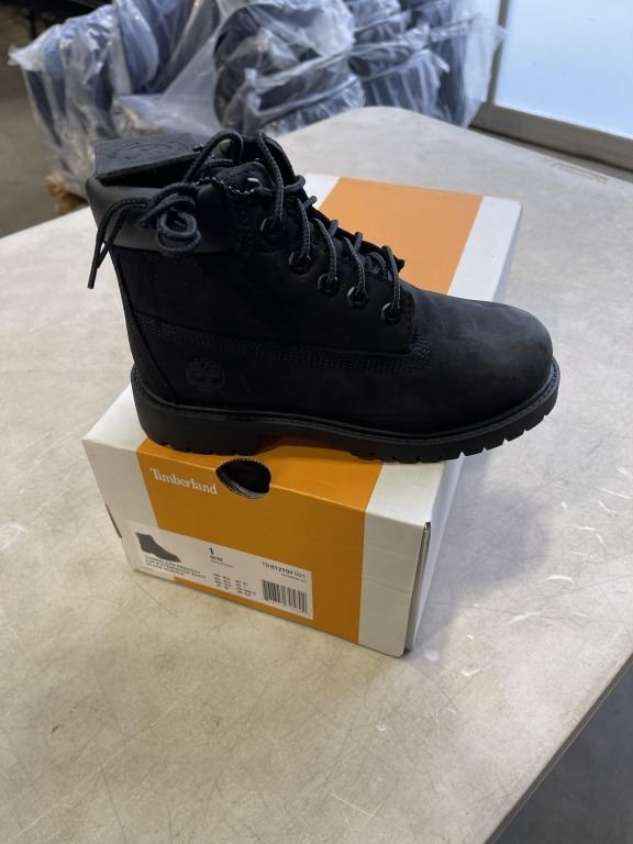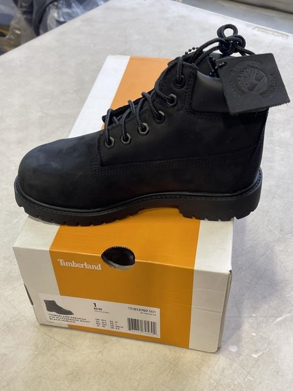 NEW TIMBERLAND PREMIUM 6 IN WATERPROOF BOOT BLACK NUBUCK, SIZE 1 YOUTH
