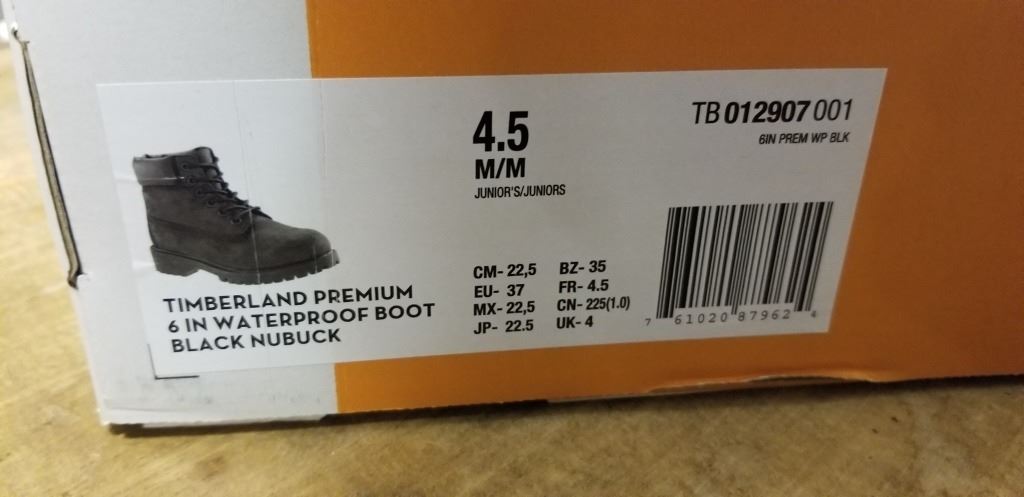 NEW TIMBERLAND PREMIUM 6 IN WATERPROOF BOOT BLACK NUBUCK SIZE JUNIOR 4.5