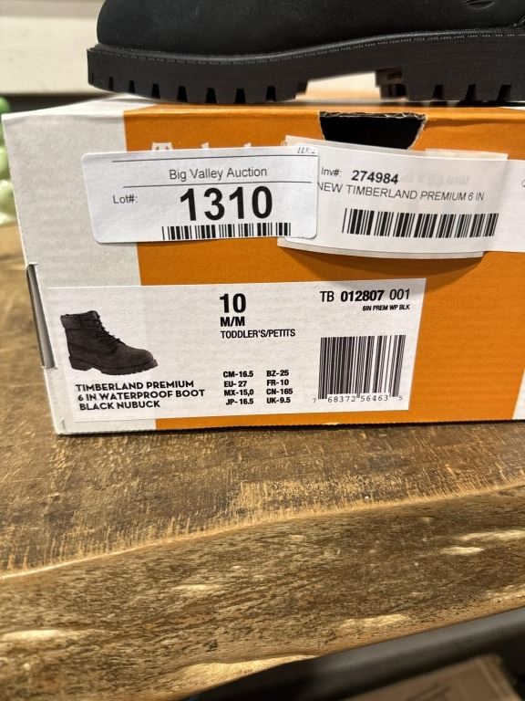NEW TIMBERLAND PREMIUM 6 IN WATERPROOF BOOT BLACK NUBUCK SIZE TODDLER 10