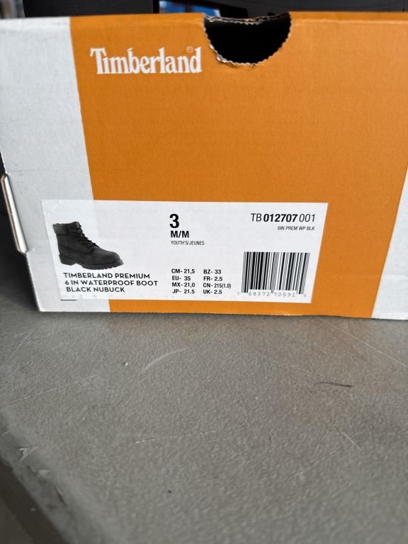 NEW TIMBERLAND PREMIUM 6 IN WATERPROOF BOOT BLACK NUBUCK SIZE YOUTH 3