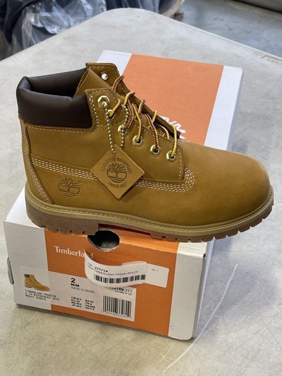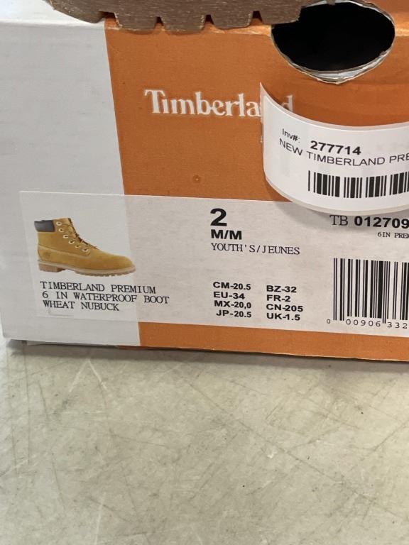 NEW TIMBERLAND PREMIUM 6 IN WATERPROOF BOOT WHEAT NUBUCK, SIZE 2 YOUTH