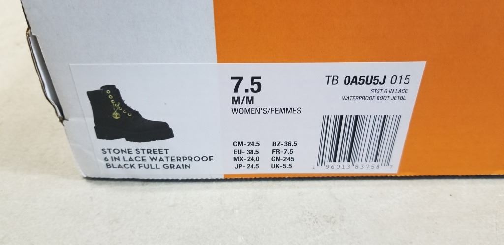 NEW TIMBERLAND STONE STREET 6 INCH LACE WATERPROOF BLACK FULL GRAIN LEATHER BOOTS SIZE WOMENS 7.5