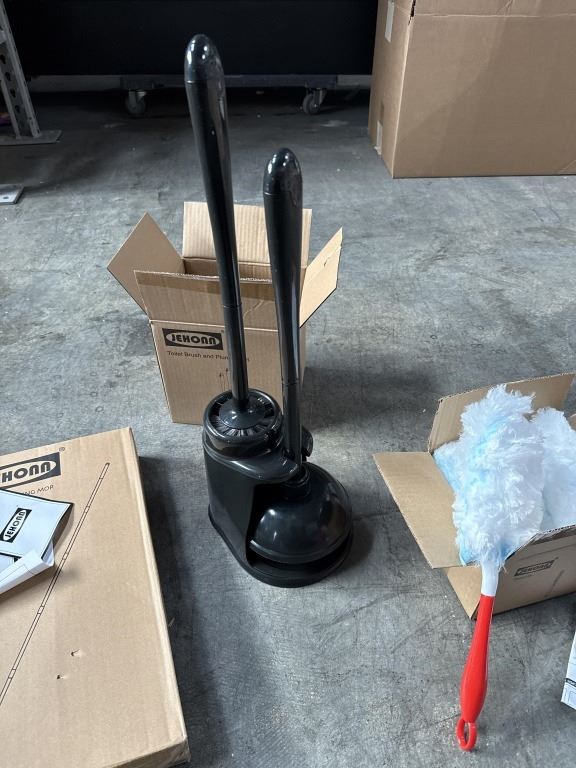 NEW TOILET BRUSH AND PLUNGER SET, WALL CLEANING MOP SETWITH EXTRA PADS, AND DUSTER WITH 30 REFILLS