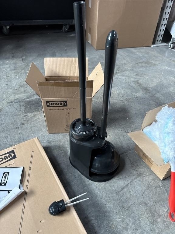 NEW TOILET BRUSH AND PLUNGER SET, WALL CLEANING MOP SETWITH EXTRA PADS, AND DUSTER WITH 30 REFILLS
