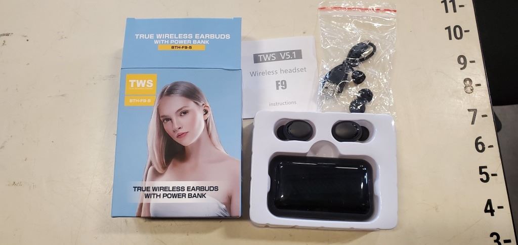 NEW TRULY WIRELESS STEREO TOUCH ENABLED EARBUDS WITH POWER BANK: 1 TOUCH PLAY/PAUSE, 2 TOUCH RIGHT P