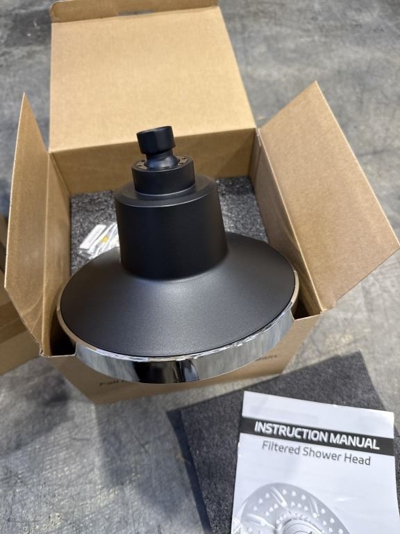 NEW UNIQUE RAIN SHOWER HEAD AND NEW BLACK TOILET BRUSH AND PLUNGER SET